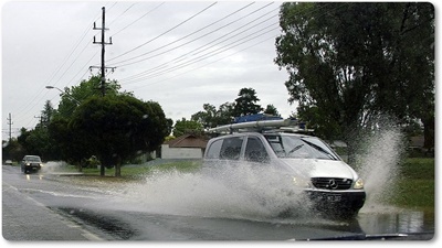 Cal anar molt en compte els dies de pluja forta. Si es condueix un cotxe, la velocitat i la carretera mullada poden fer perdre al conductor el control del vehicle. L'aigua pot fer relliscar el cotxe per la superfície de la carretera. Això es coneix amb el nom d'aquaplanig. Per evitar això, els neumàtics de les rodes tenen unes marques, uns gravats, per a expulsar l'aigua.