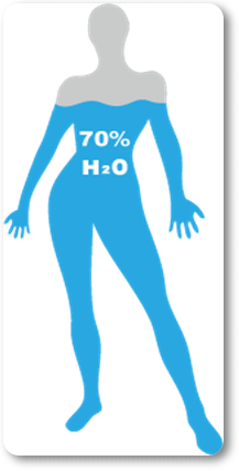 El cos humà conté de mitjana uns 37 litres d'aigua, el que equival a dues terceres parts de la massa corporal de l'adult. Una part tan important com és el cervell té el 75 % de la seva superfície plena d'aigua. Els ossos humans estan fets d'aigua en una quarta part del seu total. Un altre element important del nostre cos i més líquid com és la sang porta més d'un 80 % d'aigua.