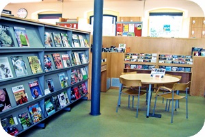La Biblioteca es va inaugurar el 7 de juliol del 2001, anteriorment existia al municipi una petita sala de lectura inaugurada el 1970. L'edifici on es troba antigament havia estat una fàbrica tèxtil (Fàbrica Joan Artigues Alart). La biblioteca té 663m2 i 65 punts de lectura.