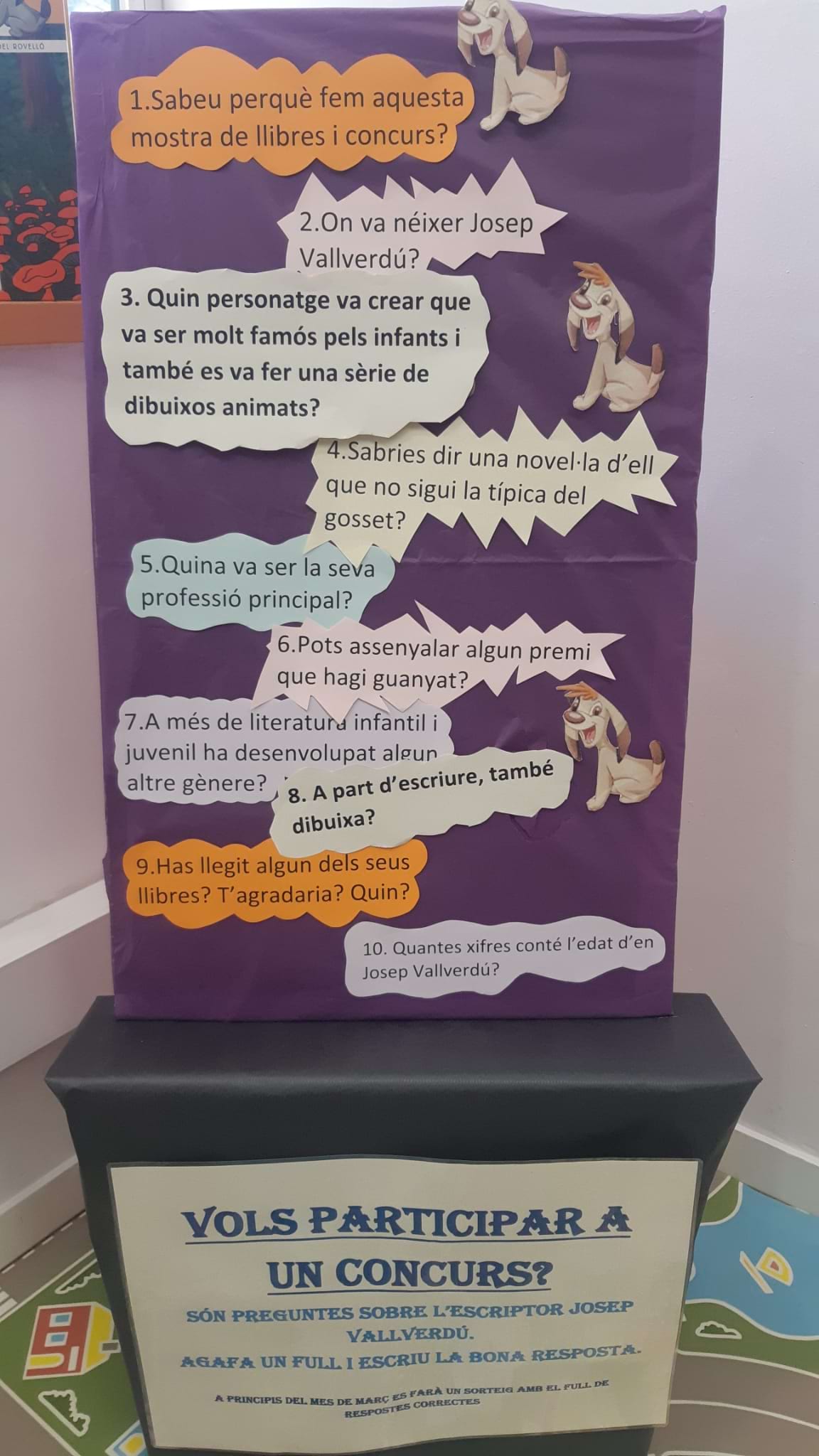 A la Biblioteca Central de Terrassa es va fer un concurs durant el mes de febrer en el que s'havien de respondre correctament 10 preguntes sobre Josep Vallverdú.