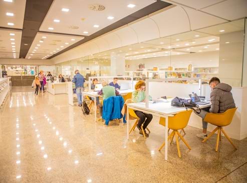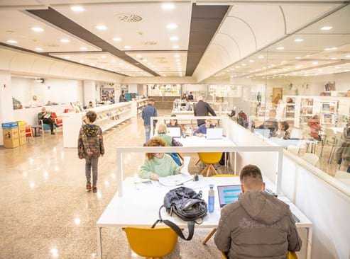 La biblioteca especialitzada en cooperativisme, disposa de centres d’interès d’aprenentatge de llengües, cultura popular, desenvolupament personal, espai jove, famílies, món laboral i viatges i turisme actiu.