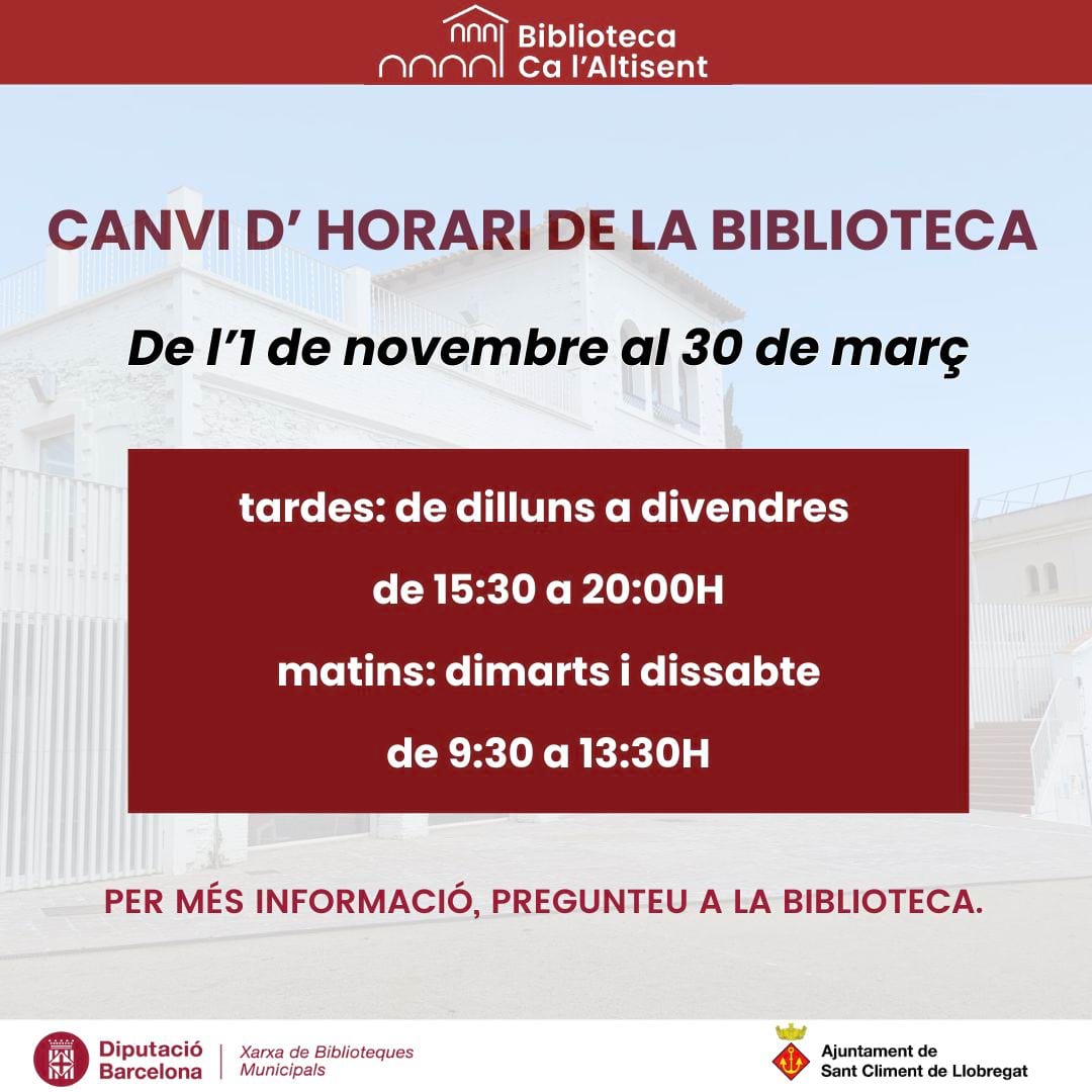 • NOVETAT: Nou canal de difusió per a la programació d'activitats "Biblioteca Ca l'Altisent-Activitats" vía Whatsapp.   https://whatsapp.com/channel/0029VaDdsfK9MF91lnM7h631