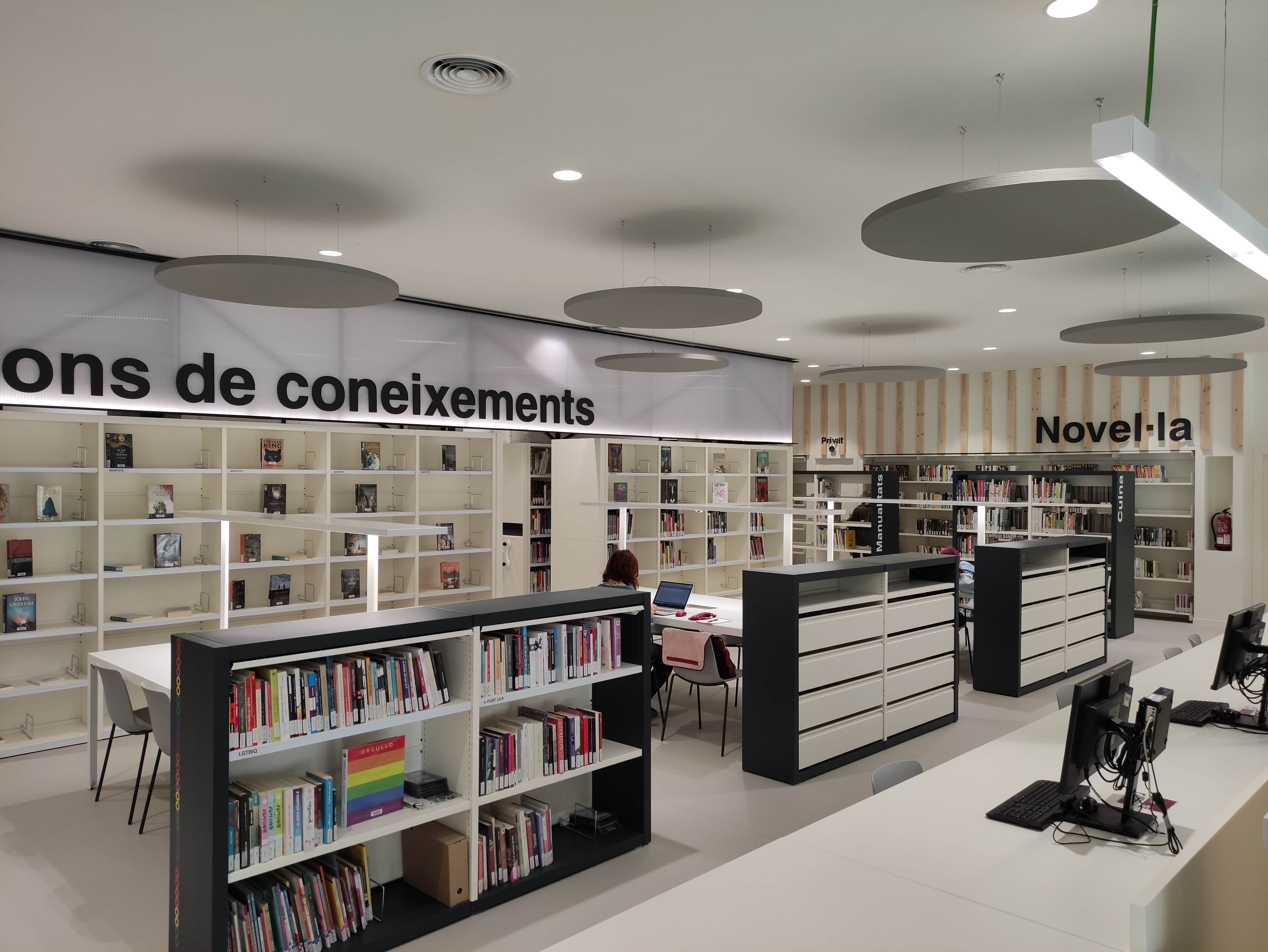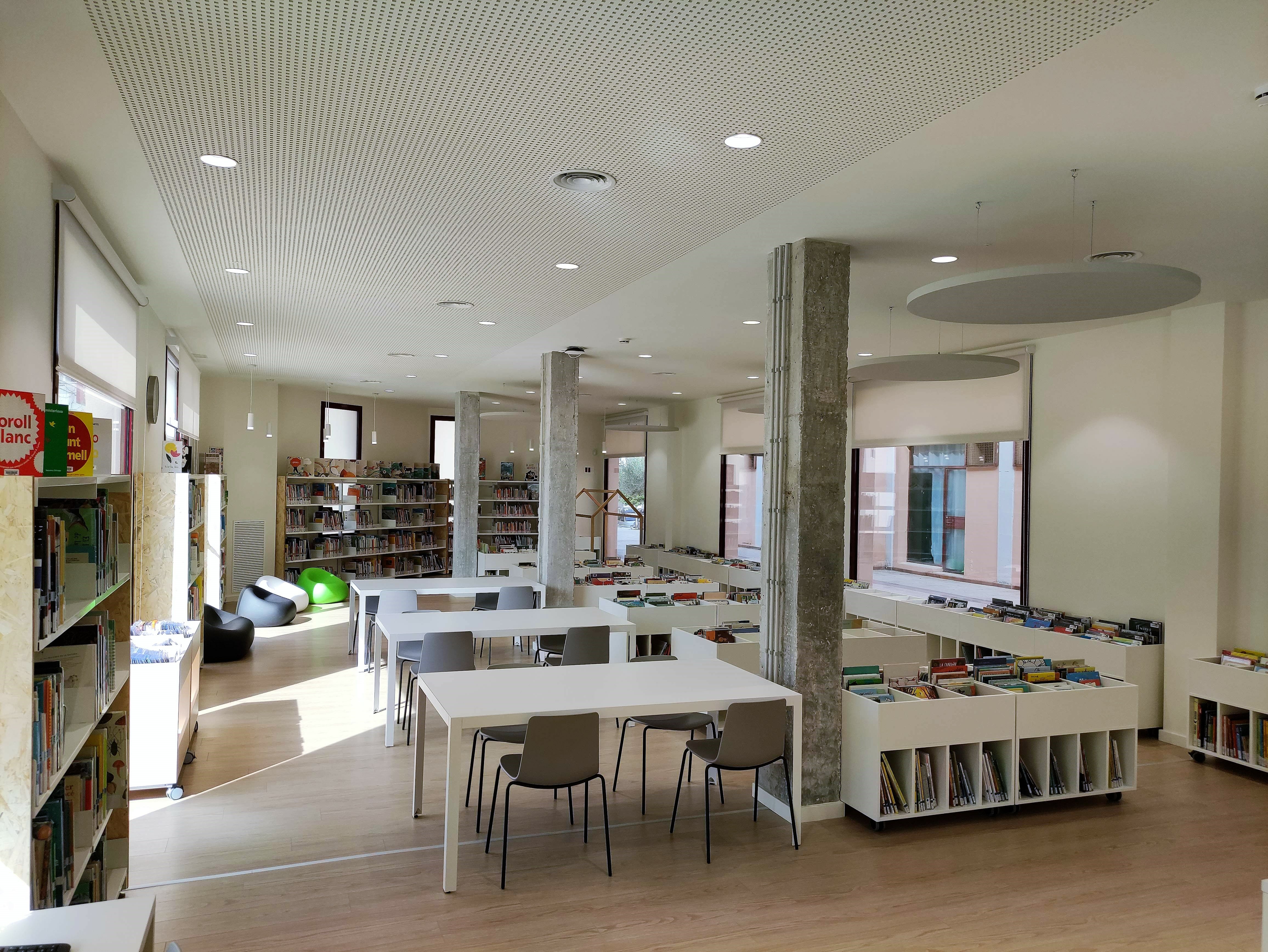 La biblioteca Josep Pla va ser inaugurada l'any 1993. L'edifici de la Biblioteca Josep Pla es troba al cor del barri de Les Roquetes, a prop de l'institut i del centre sanitari. Forma part de l'edifici que dóna cabuda al Centre Cívic L'Espai. La biblioteca es troba a la planta baixa, a la qual s'accedeix per un parc. Durant el 2008 s'hi van fer obres d'ampliació i millora de l'equipament, passant d'ocupar 447,30 m2 de superfície construïda a 582,45 m2. Ofereix un fons total de 32.373 documents. Porta el nom de Josep Pla (1897-1981), un dels escriptors catalans més llegit i més popular de totes les èpoques.