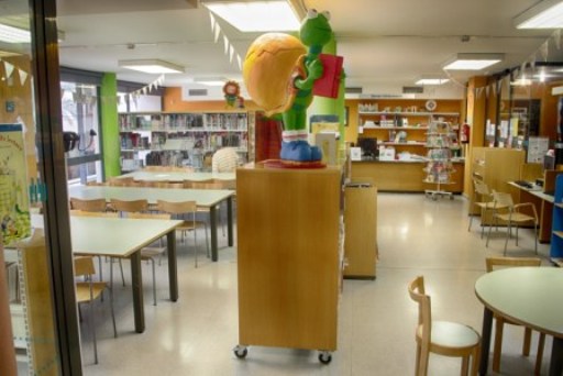 L'edifici de la biblioteca Manuel de Pedrolo és de nova planta. Es va inaugurar l'abril de 1999. La biblioteca ocupa, amb un total de 1100 m² de superfície construïda, els baixos i part de la primera planta d'un edifici d'habitatges particulars. La planta baixa, comprèn el vestíbul, la sala de música i revistes, l'àrea general i la sala polivalent. A la primera planta hi ha la sala infantil, amb un espai diferenciat per a petits lectors, i la zona de despatx i magatzem. Els 90 punts de lectura de què disposa la biblioteca estan repartits per les diferents sales al voltant dels grans finestrals que proporcionen la màxima quantitat de llum natural. Totes les sales són independents i permeten el funcionament autònom de la sala polivalent fora de l'horari habitual de la biblioteca.