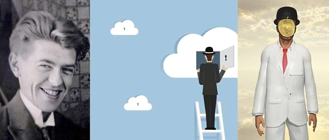 Un dels quadres que més ens agrada és el seu autorretrat “El fill de l’home”, on la cara d’un home amb barret apareix darrere d’una poma verda.