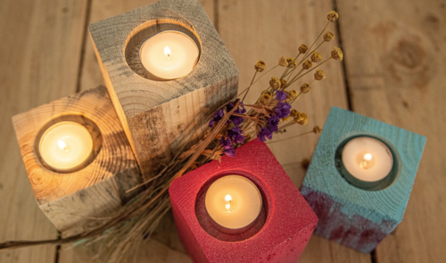 A partir de fusta de palet reutilitzada fabricarem portaespelmes i aprendrem la tècnica del pinzell sec, entre d’altres, per a decorar la nostra espelma.