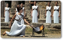 L'himne olímpic s'interpreta durant la jornada Inaugural dels Jocs, acompanyant l'entrada de la bandera Olímpica a l'Estadi. Ja va sonar a la primera edició dels Jocs Moderns de l'any 1896 però no va ser fins l'any 1957 que no es va oficialitzar. Es basa en un poema de Costis Palamas, la seva lletra és en grec i només s'ha traduït als idiomes oficials del COI, anglès i francès. | ||