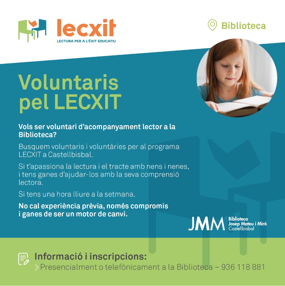 La Biblioteca reprèn el Programa LECXIT de la Fundació Bofill : lectura per a l'èxit educatiu. Amb l'inici de temporada, s'obre un període d'inscripcions per a infants lectors i adults acompanyants voluntaris.