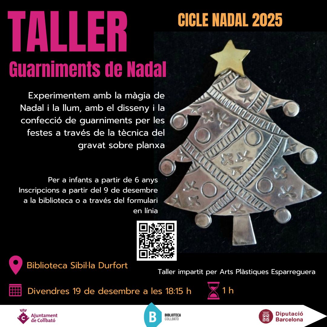 Inscripcions a partir del 3 de desembre a la biblioteca o a través del formulari en línia https://forms.gle/YwLLnBwuanRHggcS8