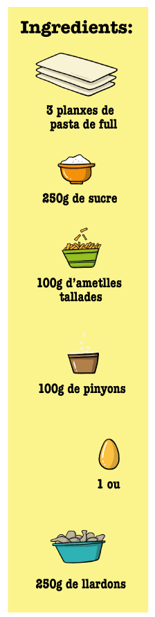 3.- Cobreix-ho amb una altra planxa de pasta de full i posa-hi més llardons a sobre.
