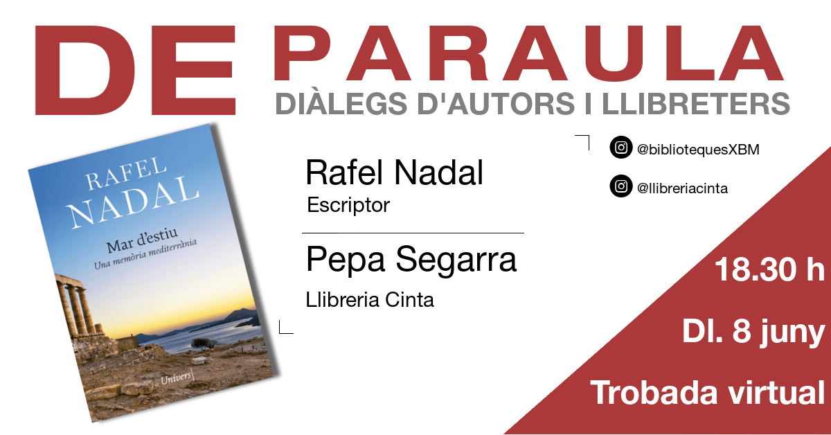 Dilluns 8 de juny a les 18:30 h, l'escriptor català Rafel Nadal va conversar amb Pepa Segarra de la Llibreria Cinta sobre el llibre Mar d'estiu.
