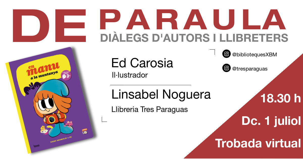 Dimecres 1 de juliol a les 18:30 h, l'il·lustrador Ed Carosia va conversar amb Linsabel Noguera de la Llibreria Tres Paraguas de Gavà sobre l’ofici d’il·lustrador i el còmic infantil i juvenil.