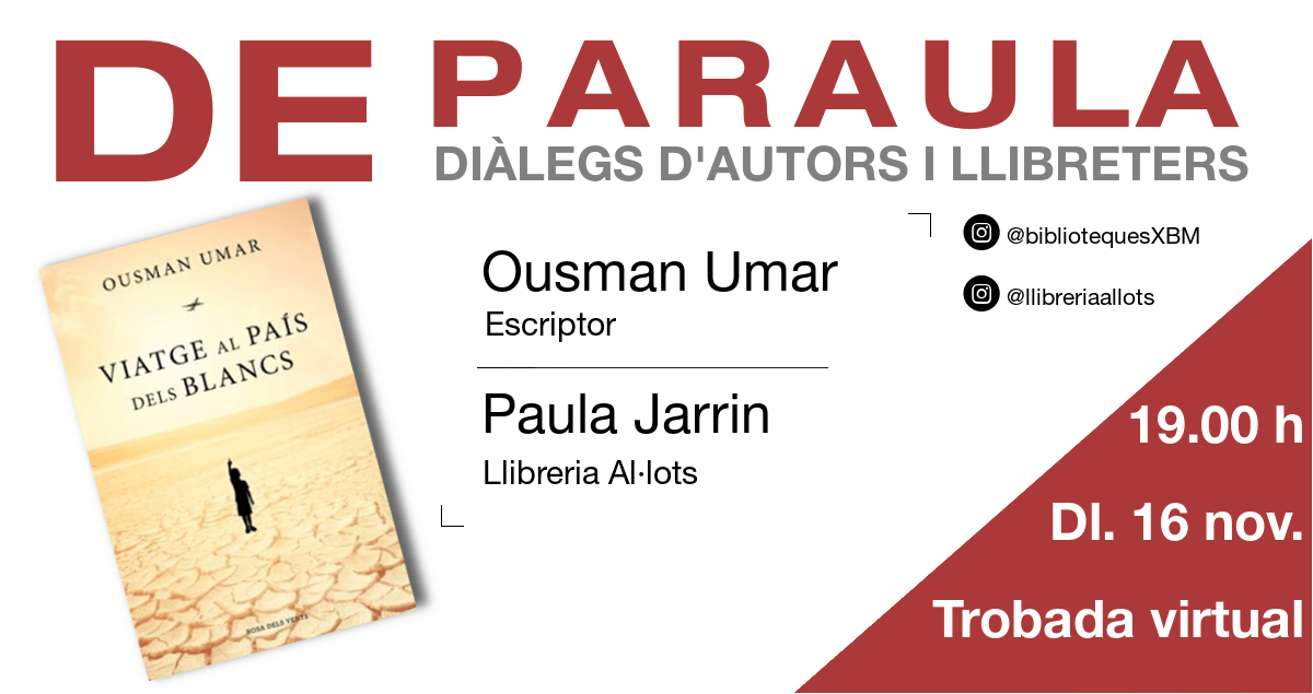 Dilluns 16 de novembre a les 19:00 h, l'autor Ousman Umar va conversar amb la Paula Jarrin de Llibreria Al·lots, sobre el llibre Viatge al país dels blancs.
