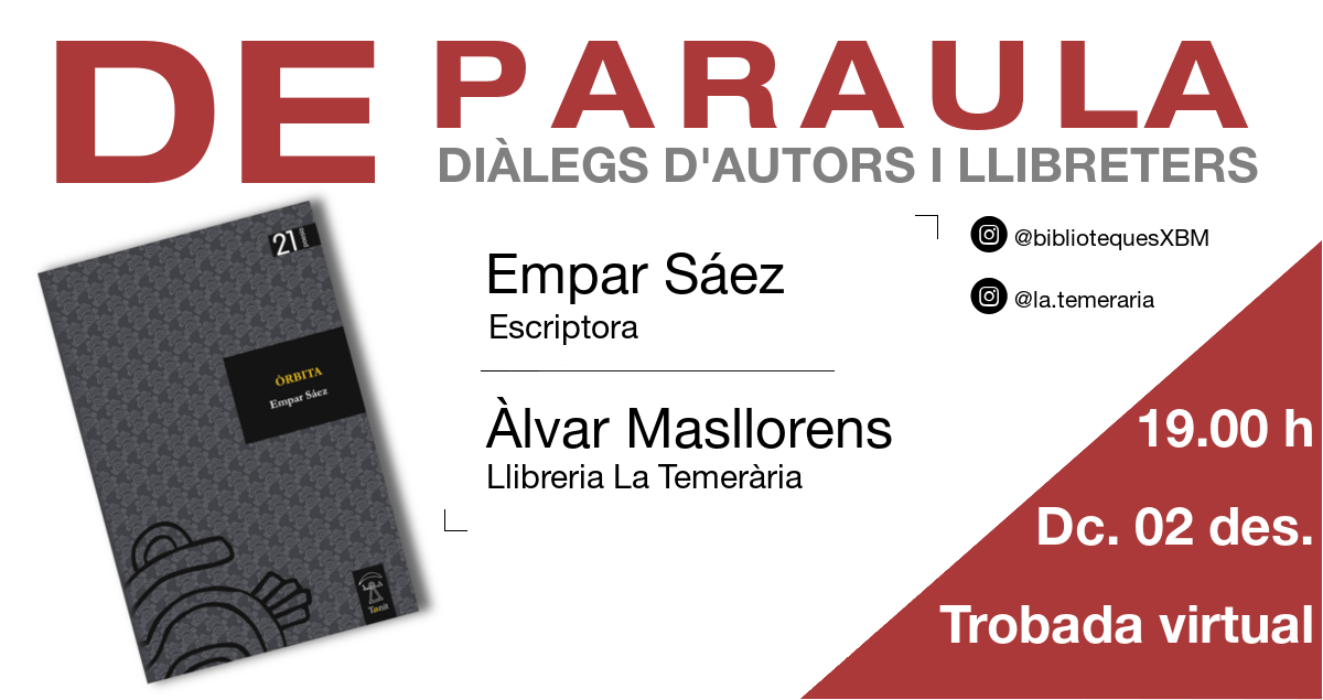 Dimecres 2 de desembre a les 19:00 h, l'autora Empar Sáez va conversar amb l'Àlvar Masllorens de Llibreria La Temerària, sobre el llibre Òrbita.