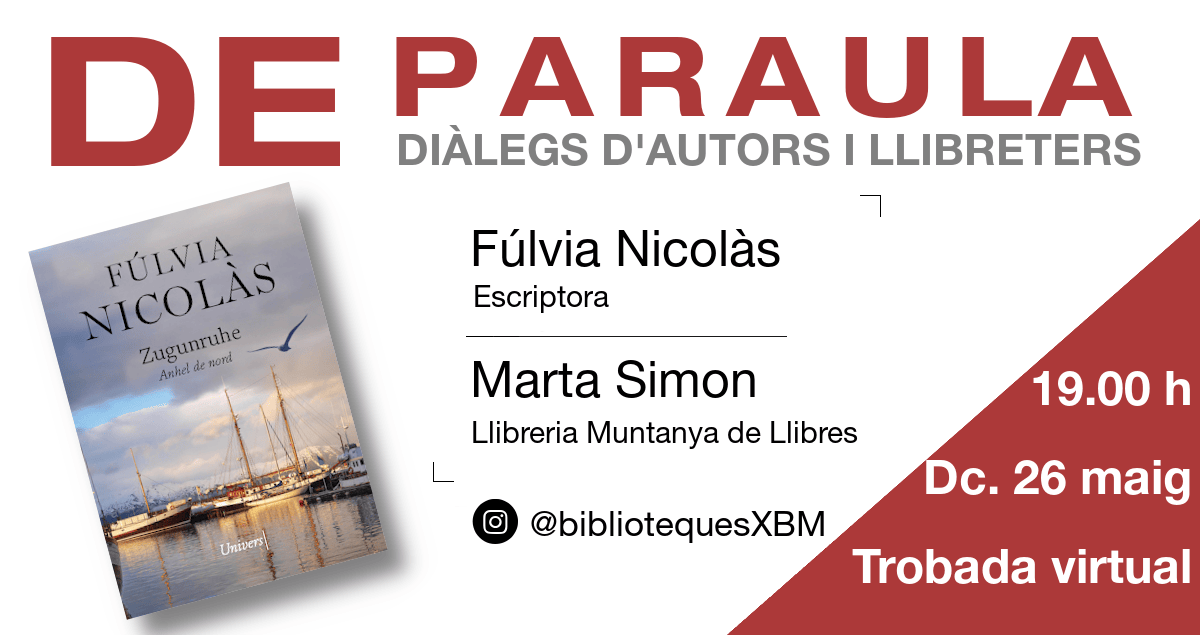 Dimecres 26 de maig a les 19:00 h, l'escriptora Fúlvia Nicolàs va conversar amb Marta Simon de la llibreria Muntanya de Llibres, sobre el llibre Zugunruhe. Anhel de nord.