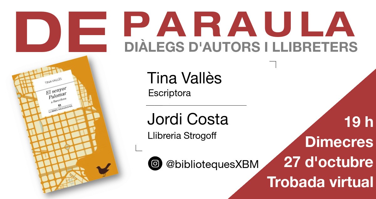 Dimecres 27 d'octubre a les 19:00 h, l'escriptora Tina Vallès va conversar amb Jordi Costa de la llibreria Strogoff, sobre el llibre El senyor Palomar a Barcelona.