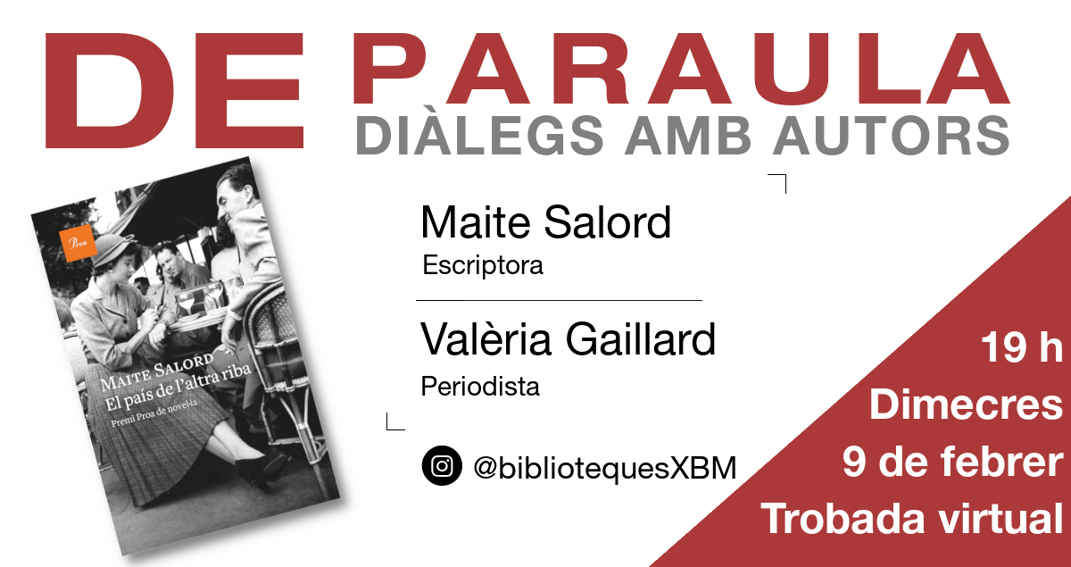 Dimecres 9 de febrer a les 19:00 h, l'escriptora Maite Salord va conversar amb la periodista Valèria Gaillard, sobre el llibre El país de l'altra riba.