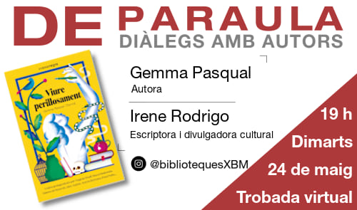 Dimarts 24 de maig a les 19:00 h, l'escriptora Gemma Pasqual va conversar amb l'escriptora i divulgadora cultural Irene Rodrigo, sobre el llibre Viure perillosament.