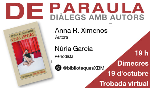 Dimecres 19 d'octubre a les 19:00 h, l'escriptora Anna Rodríguez Ximenos va conversar amb la periodista Núria Garcia, sobre el llibre Vidas lentas.